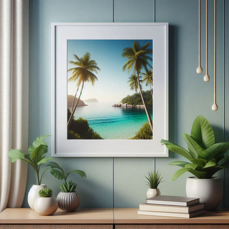 Mockup poster frame close up in coastal style home interior,
