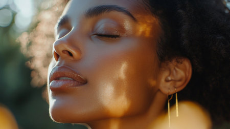 Close-up portrait of beautiful african american woman with closed eyes