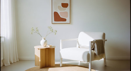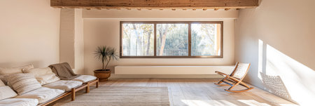 This image depicts a cozy and serene living space filled with natural light, featuring minimalist decor and inviting elements that create a calm atmosphere.