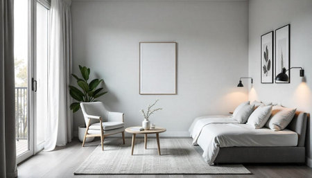 Modern bedroom interior showcasing minimalist design and neutral tones