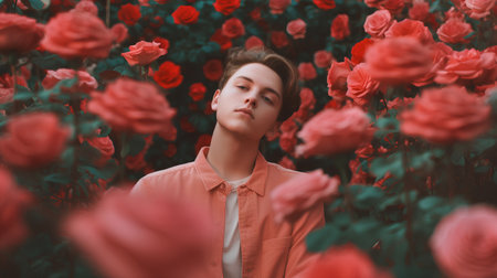 Young Man Seeking Peace, Tranquility, and Connection with Nature. Environmental Portrait.
