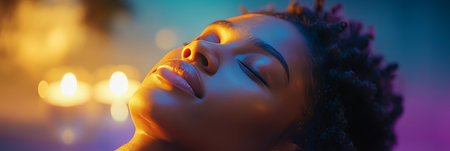 Close Up of Serene Woman Enjoying Spa Session with Peaceful Lighting for Total Relaxation