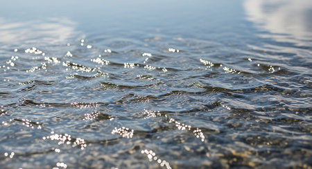 Tranquil Water Surface with Gentle Ripples Reflecting the Sky, a Serene Blue Liquid Harmony Scene