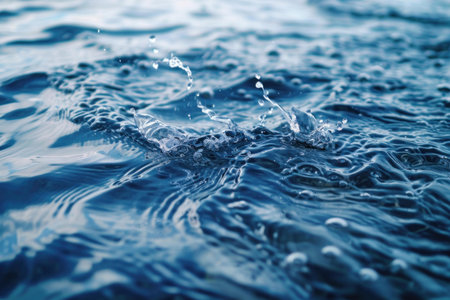 Water surface with splashes, small waves, ripples and rain drops closeup
