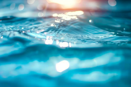 Abstract background of water in swimming pool with bokeh effect.