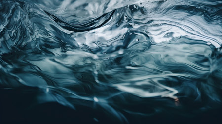 Water surface close up Abstract wavy liquid texture background Dark blue reflecting fluid detail Turbulent flow movement pattern design.