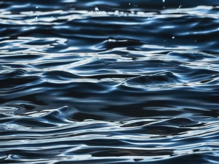 This image captures a serene water surface adorned with gentle waves and subtle reflections. Perfect for backgrounds or designs that evoke calmness and tranquility.