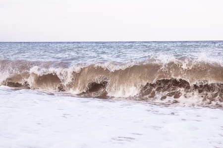 Landscape of a beach shore with waves and foam