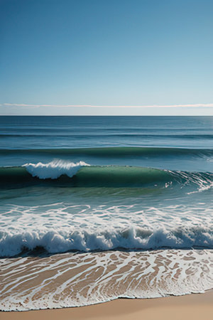 Rolling blue waves crash gently beneath a spotless, cerulean sky, capturing a serene and expansive maritime scene full of tranquility and natural beauty.