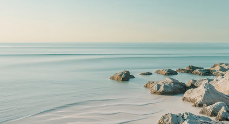 AI Generated. Abstract Coastal Landscape with Smooth Ocean and Rocks