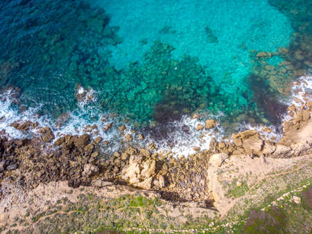 Aerial view of Sanap cliffs. Gozo island, Malta