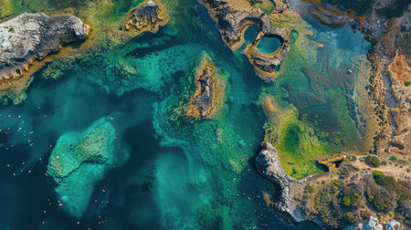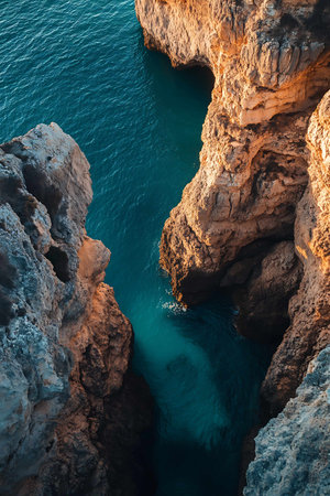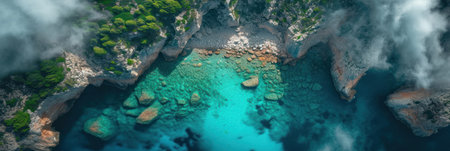 Mystical Hidden Cove: Aerial View of a Secluded Turquoise Bay Amidst Rocky Cliffs