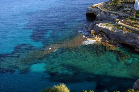 Clear water by the rocks in Alghero shoreline. Sardinia, Italy