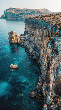 Beautiful greek coast cyprus seaside shore cliffs hiking nature vacation summer mediterranean island tourism waves splashes sunny holiday spain bay rocky beautiful destination