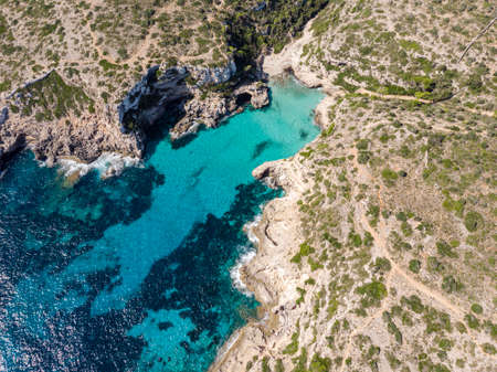 Aerial view of the coast of Portopetro, island of Mallorca, Balearic Islands, Spain