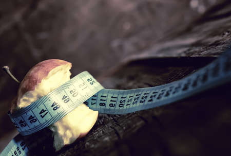 natural fruits with tape measure, diet concept