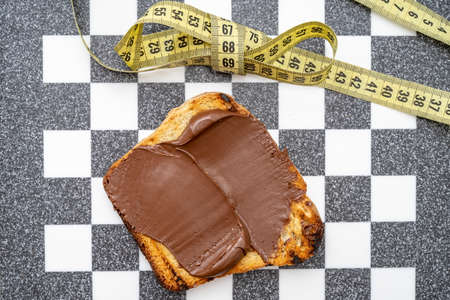 chocolate on toast with a bow made from measuring tape, on a chess board