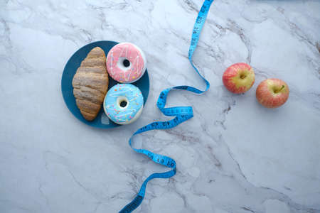 comparing donuts and apple, healthy diet concept