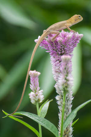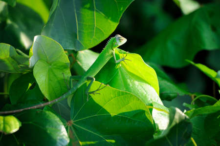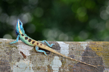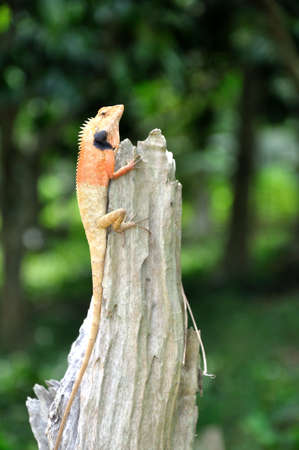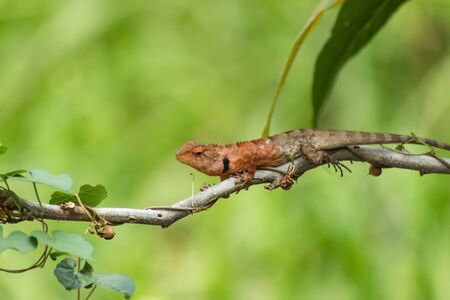Oriental garden lizard lives on tree branches. Can be found in houses or gardens or in general forest areas. It likes to sunbathe.