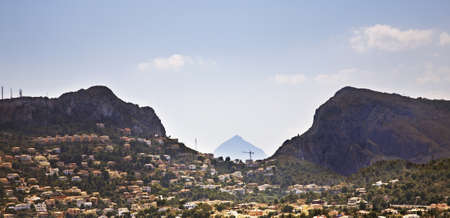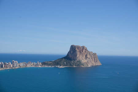 View of the Calpe peninsula in Spain with the Calp peak and the city in the background