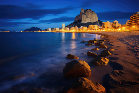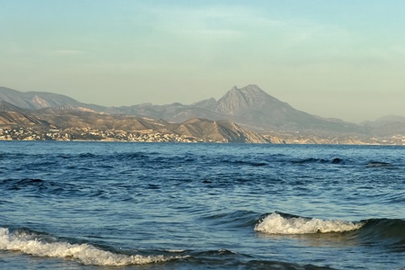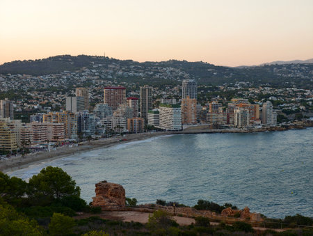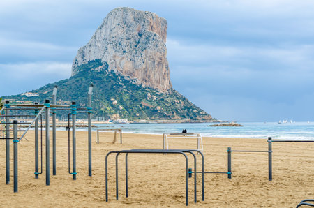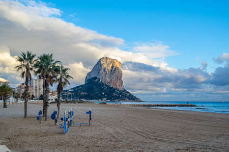 Breathtaking picturesque view on sandy beach in Calpe, Spain