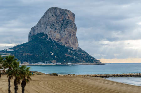 View of the beach of Calpe with the Peñon de Ifach in the background, Alicante province, Spain