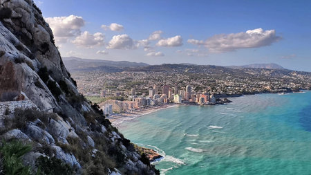 view of the coastal town of Alfas del PI, located in Alicante, Spain. Beach