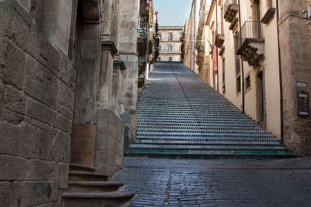 View of a stairway in Modica in Sicily overlooking city beneath it