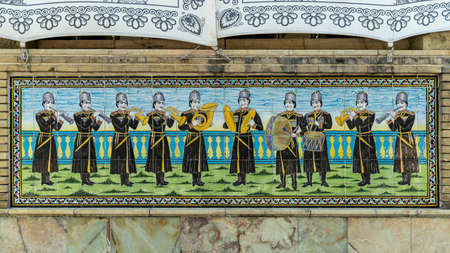 Tehran, Iran - May 2019: Golestan palace wall with Persian religious tiles art painting