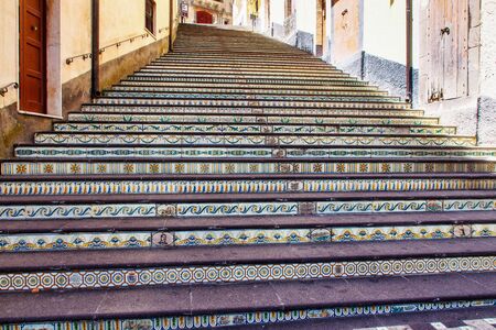 characteristic ceramic majolica staircase in Sciacca Sicily Italy