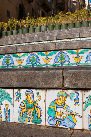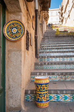 Staircase with features Sicilian ceramics in Vizzini, Sicily, Italy