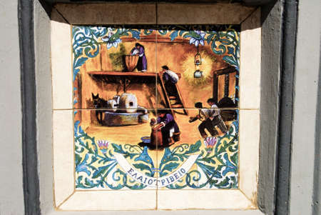 A portuguese tile in a wall, on the street, portugal