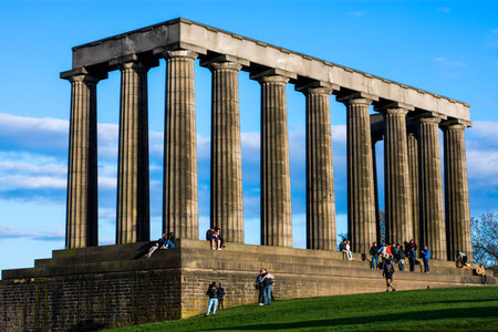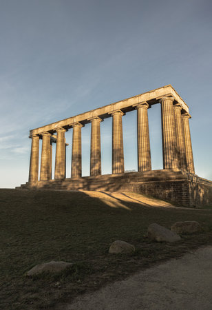 The National Monument of Scotland stands on Calton Hill, showcasing its iconic Greek-inspired architecture.