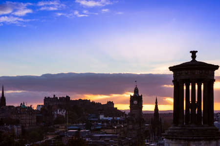 The cityscape of Edinburgh in Scotland, the United Kingdom at sunset