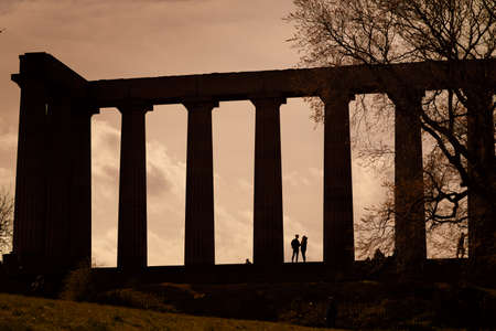 National Monument of Scotland silhouette on the Calton Hill in city of Edinburgh, Scotland, UK.