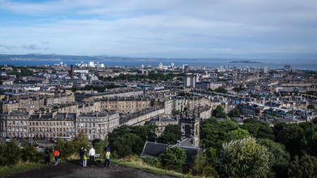 Edinburg, UK - August 23, 2021: People looking over the sea from Calton hills