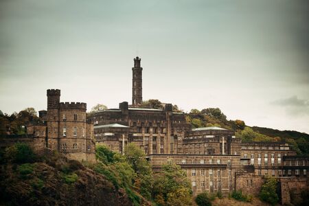 monument on Calton hill and view on historical city Edinburgh, capital city of Scotland
