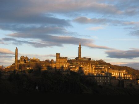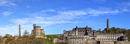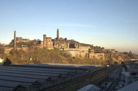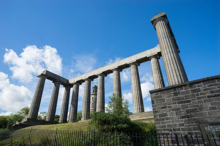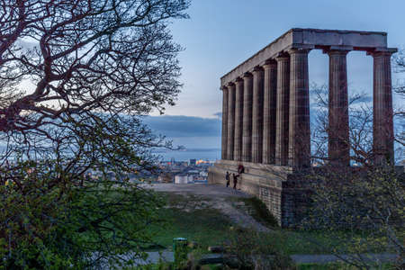 View of Calton Hill at Edinburgh, Scotland, ith National Monument and Nelson Monument
