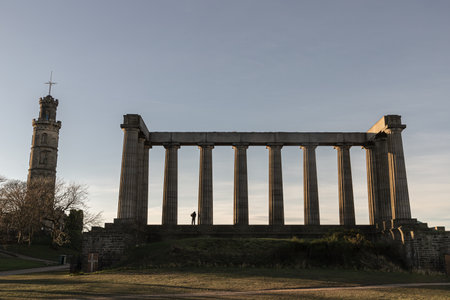 Roman ruins on top of Calton Hill in the city of Edinburgh, Scotland.