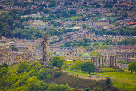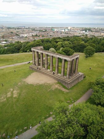 Edinburgh city the view from historic Calton Hill Aerial shot