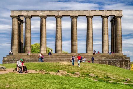 EDINBURGH, SCOTLAND - MAY 18: National monument of Scotland at Calton hill on May 18, 2018 in Edinburgh