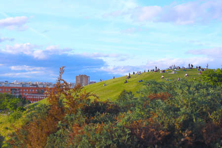 People enjuoing the high angle view cityscape from Holyrood Park at Edinburgh