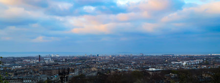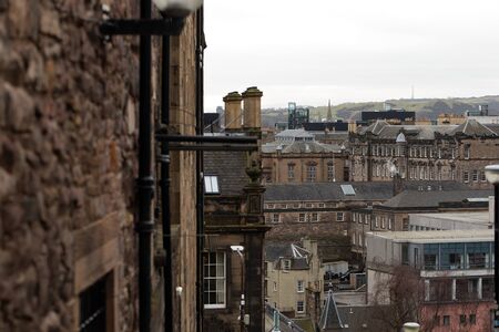 City view on the Old and New Roof Tops and Houses from the Hill during Sunny Day in Edinburgh, Scotland.
