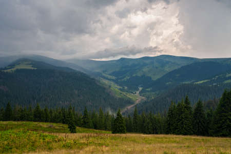 Cloudy summer Carpathian mountains landscape. Chornogora ridge, Ukraine, Europe