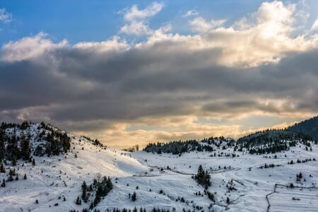 mountain landscape in winter on a cloudy day. Carpathian Mountains, Romania.