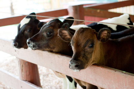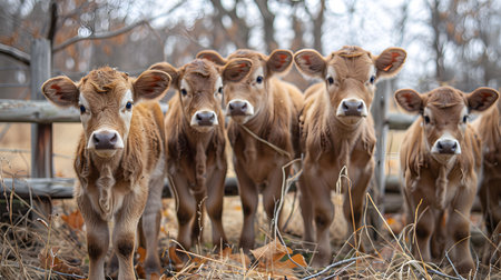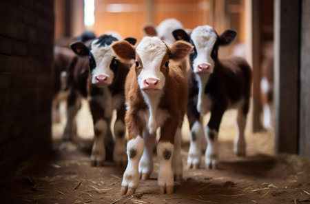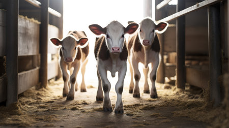 Budding Bovines: Group of Calves Flourishing Indoors in Farm Yard. Generative ai. High quality illustration