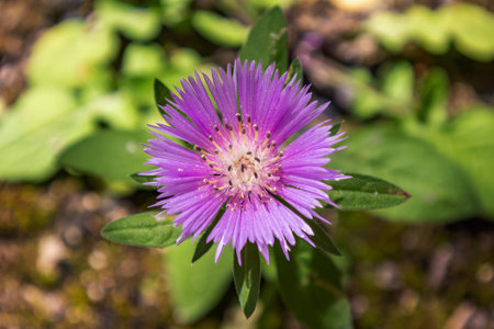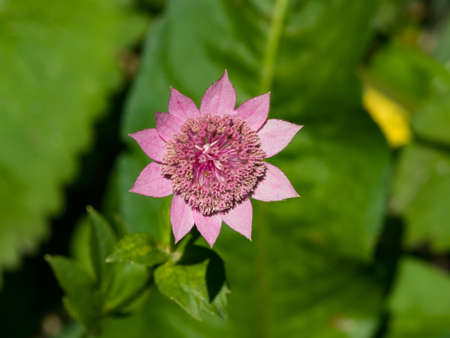 Flower of Great masterwort or Astrantia maxima close-up, selective focus, shallow DOF.