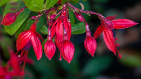 Close Up of red bud of flowers with orange petals and green leaves in form of strawberry.
