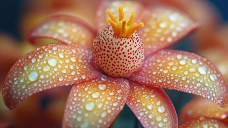 A macro shot of an exotic flower showcasing intricate patterns and vibrant colors in a detailed composition.