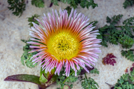 Pink and purple Carpobrotus chilensis flower growing in Zante, Greece